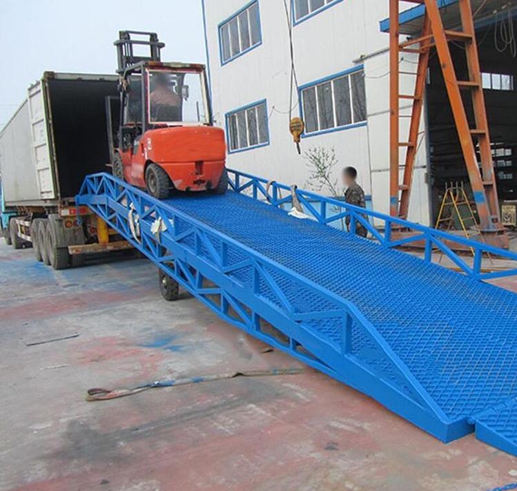 威海登車橋-威海移動登車橋-集裝箱裝卸貨平臺-液壓裝車橋。移動登車橋采用人工液壓動力,不需外接動力電源,只需單人操作,就可以實現(xiàn)貨物的安全快速裝卸,節(jié)省時間和人力資源。它可使企業(yè)減少大量勞動力,成倍提高裝卸作業(yè)效率,加快貨物流通速度,獲取更大經濟效益。移動登車橋被廣泛應用于無裝卸設備的貨臺及流動裝卸場所,是與叉車配合使用的貨物裝卸輔助設備。并可以根據(jù)不同的車型及裝車過程車廂的高度變化進行調節(jié)。廣泛應用于工廠運輸備料、物流集散中心運輸貨物、港口碼頭上下集裝箱,隨著工礦企業(yè)的發(fā)展移動式液壓登車橋越來越被廣泛的應用到各行各業(yè)卸貨中。